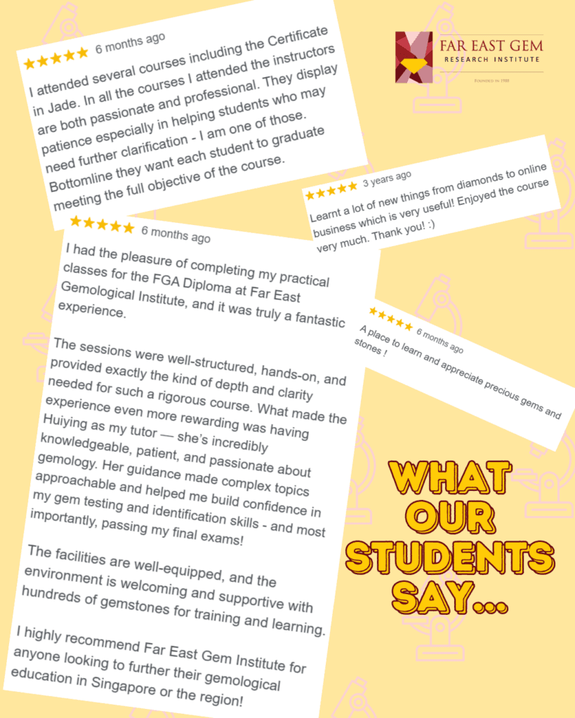 Both courses are available locally in Singapore at the Far East Gem Research Institute.